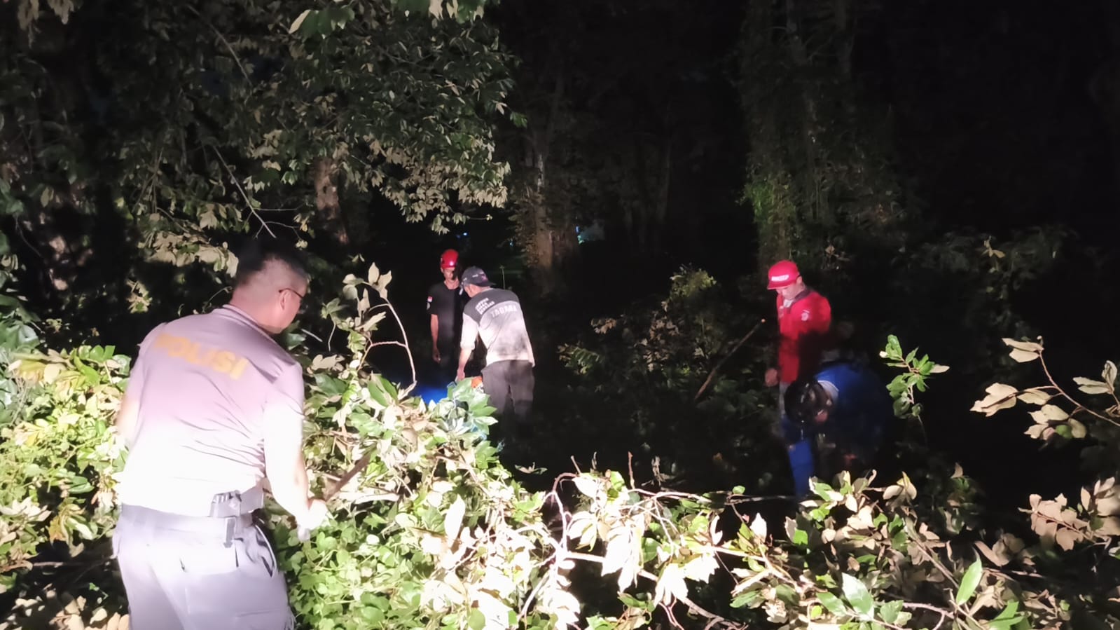 Bhabinkamtibmas Bersama Masyarakat Evakuasi Pohon Tumbang Dirumah Warga
