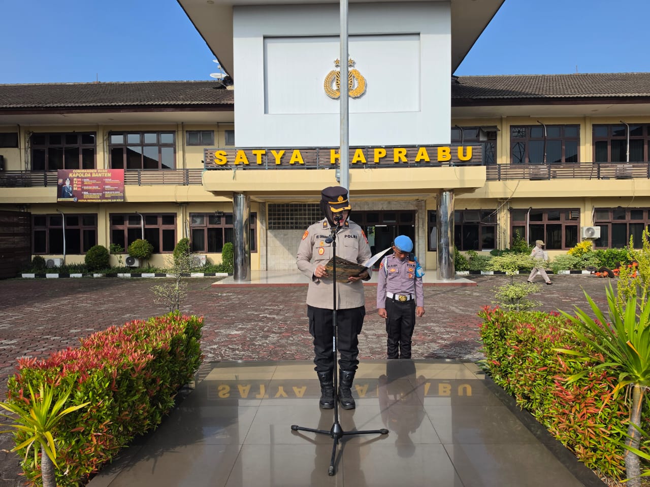 Anggota sium Polres Cilegon , tapil dalam Pellaksanaan rangka, kegiatan Apel ton Kerangka. Cilegon - Polres Cilegon Polda Banten - sium Polres Cilegon melaksanakan Apel Kerangka di Lapangan Apel Satya Haprabu Polres Cilegon Guna menunjukan kesiap siagaan pelayanan kepada masyarakat, sabtu (2/05/2026) Pukul 08.00 Wib. Kabag SDM Polres Cilegon selalu...