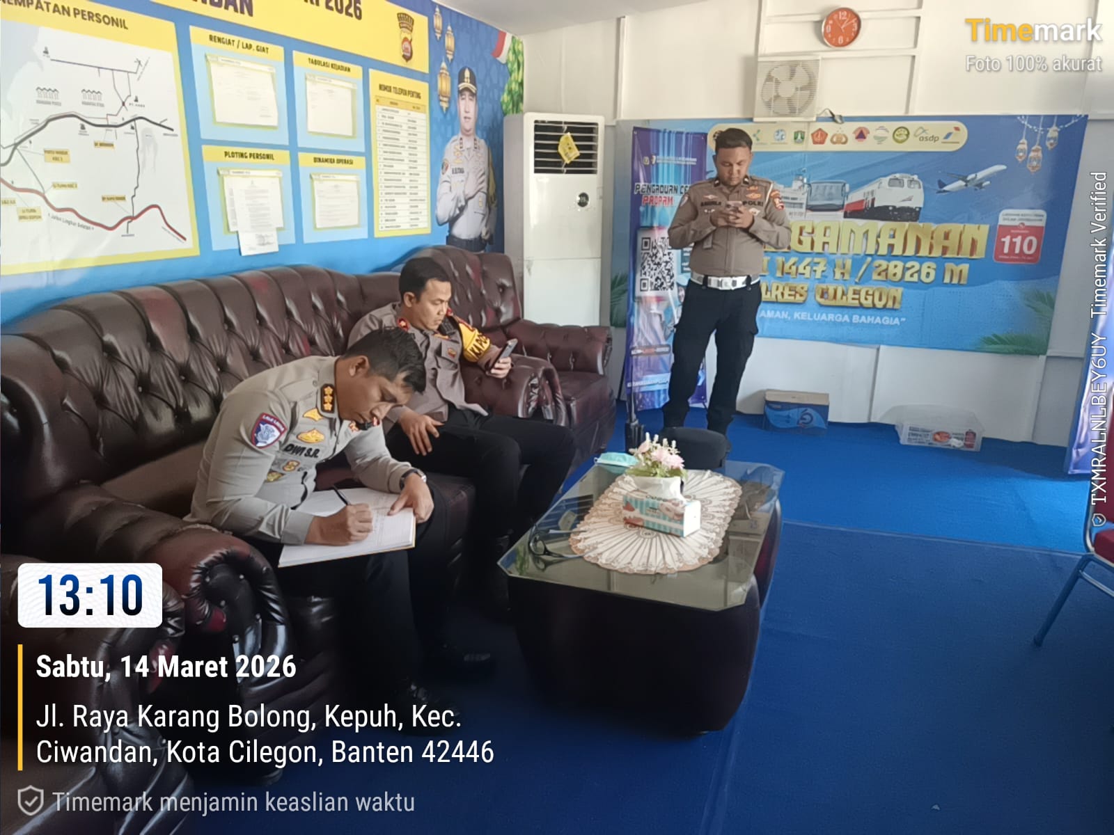 Cilegon - Polres Cilegon melalui Pos Pam 8 Ciwandan melaksanakan pengamanan Operasi "Ketupat Maung-2026" dalam rangka mewujudkan situasi kamtibmas yang kondusif selama bulan puasa dan Idul Fitri 1447 H tahun 2026, Sabtu (14/03/2026).Kegiatan ini dipimpin oleh Kapolsek Ciwandan KOMPOL ACHRI DWI YUNITO S.I.K., M.H. dengan melibatkan 10 personil kepolisian. Pengamanan ini...