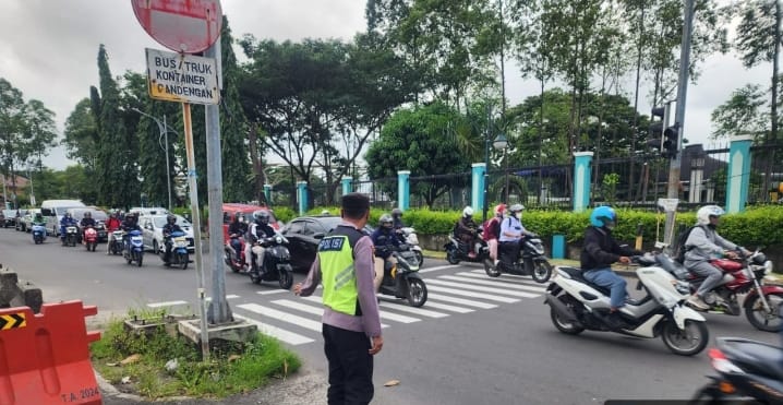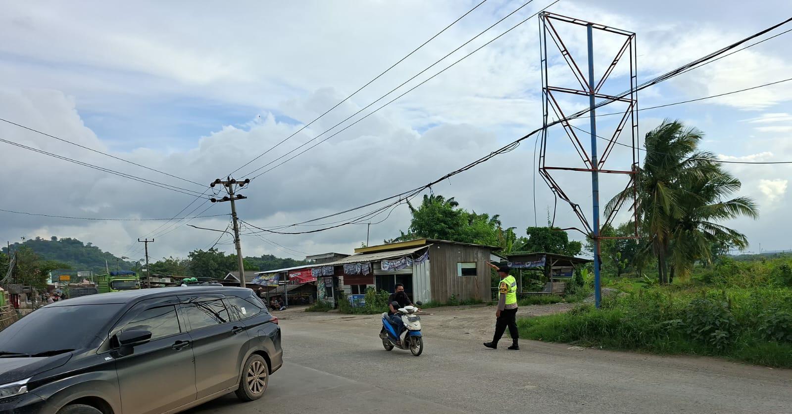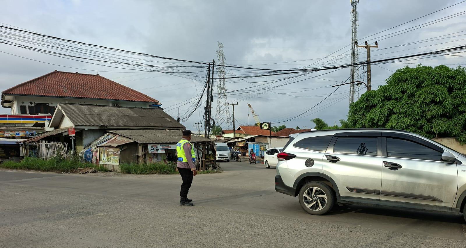 Ipda Gana Kanit Samapta dan Bhabinkamtibmas Laksanakan Gatur Lalin Di Jalan Raya Wadas Bojonegara