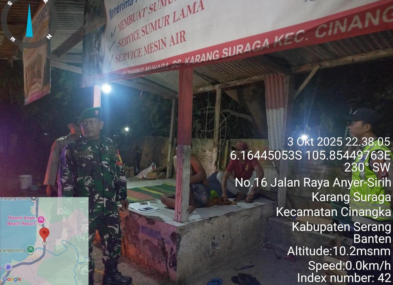 -*POLRES CILEGON*-Polda Banten. Dalam rangka Menjaga situasi kamtibmas kondusif mencegah terjadinya gangguan Kamtibmas Premanisme, Kriminalitas di wilayah Personil Piket Polsek Cinangka mencegah dan Menekan Para Pelaku kejahatan dengan Patroli Blue Light yang di Lakukan Polsek Cinangka gencar Patroli Blue Light dini hari di Wilkum Cinangka Kab Serang . Sabtu (04/10/2025)