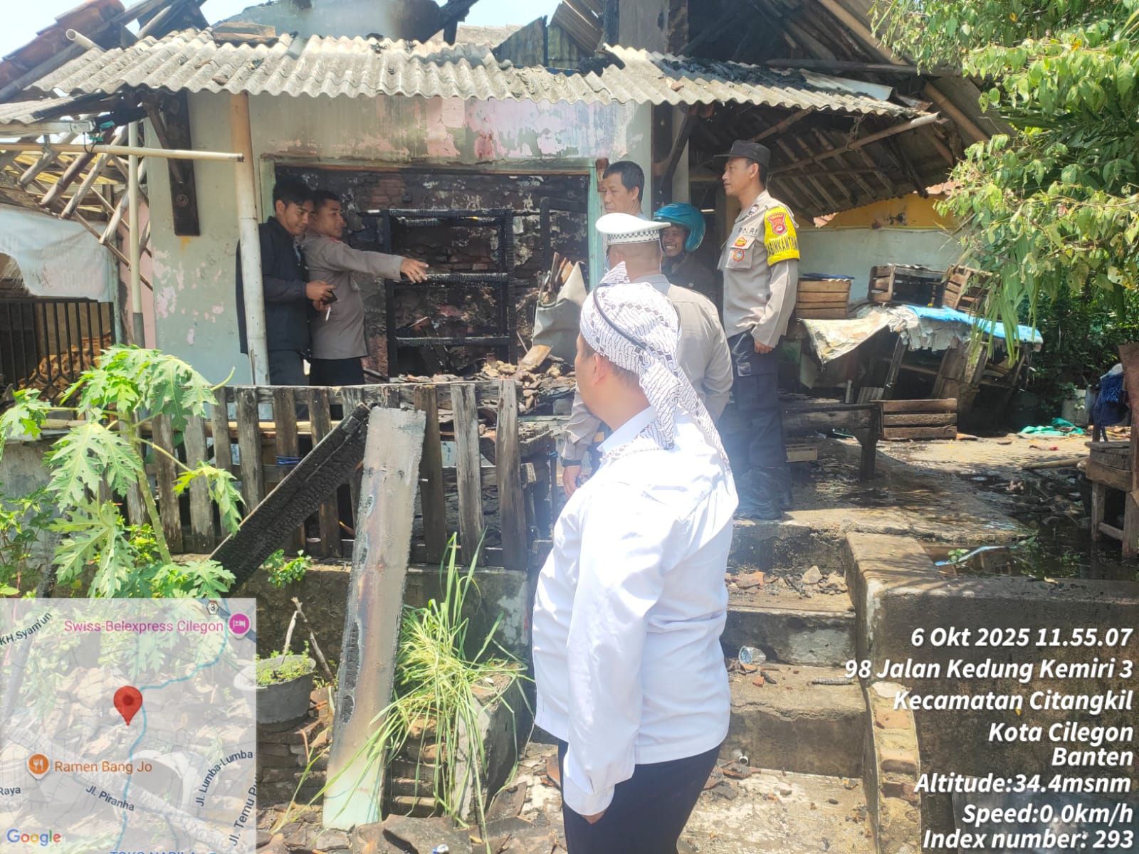 Cilegon - Polsek Ciwandan merespons cepat kebakaran warung dan dapur rumah milik Sdri. Mas'ah di Link Tegal Cabe, Kelurahan Citangkil, Kecamatan Citangkil, Kota Cilegon, pada Senin, 6 Oktober 2025. Api berhasil dipadamkan setelah tiga unit mobil pemadam kebakaran tiba di lokasi,Senin (06/10/2025).