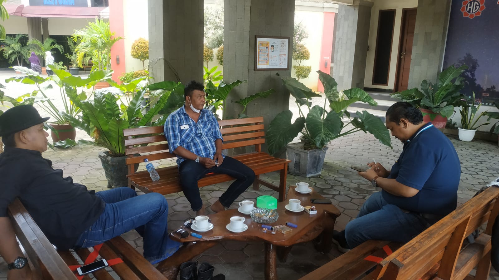 Personil sat intelkam melakukan koordinasi dengan tokoh pemuda kec. Anyar kabupaten serang.