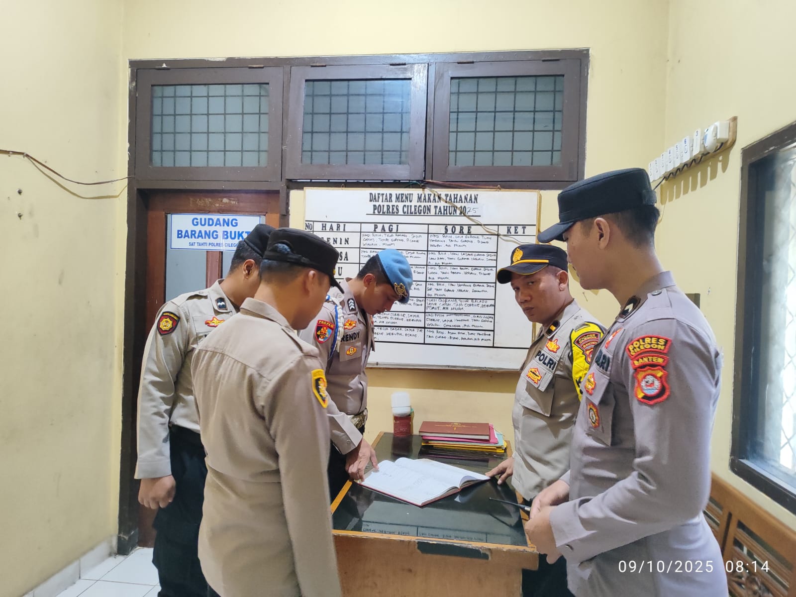 Cilegon, Polres Cilegon Polda Banten. Di gudang barang bukti Polres Cilegon. Kapolres Cilegon Polda Banten AKBP Dr.  Martua Raja Taripar Laut Silitonga,S.H,.S.I.K.,M.Si  Kepada Kasat Tahti Polres Cilegon Iptu Yudi Hartono mengingatkan agar anggota piket sattahti agar tetap terus kontrol barang bukti yang sudah dititipkan di sattahti polres cilegon.(09/10/2025)
