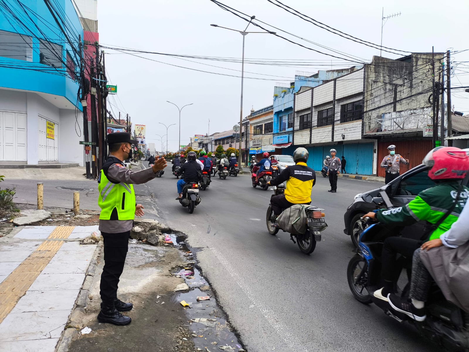 Polres Cilegon, Brigpol Hadi sudrajat melaksanakan kegiatan pengaturan arus