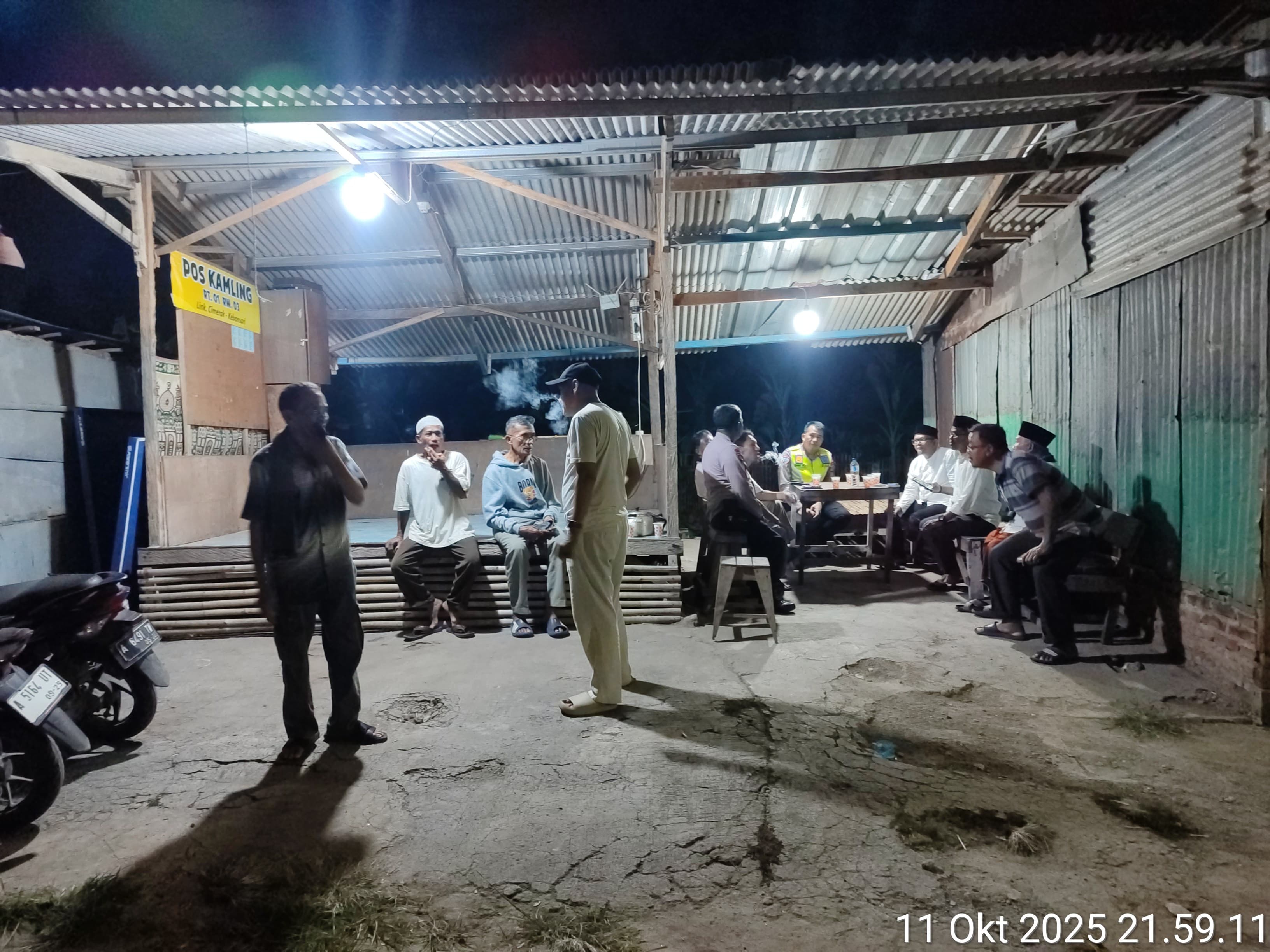 Cilegon - Kanit Lantas Polsek Ciwandan Polres Cilegon Polda Banten AKP Haris Munandar bersama Personil Polsek Ciwandan Polres Cilegon Polda Banten melakukan kontrol Pos Ronda dan Berikan himbauan kepada pihak terkait dan warga, agar kegiatan Siskamling ditingkatkan lagi, Minggu (11/10/202).