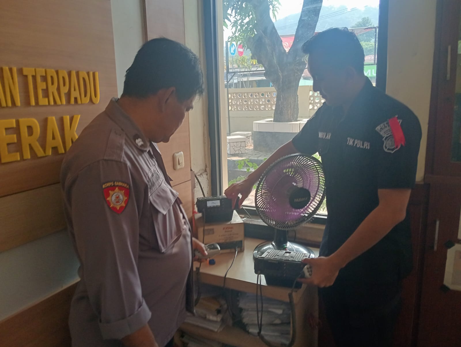 Anggota Tik Polres Cilegon Menyiapkan Sarana dan Prasarana Alkom Dalam pelaksanaan tugas tersebut anggota TIK Polres Cilegon yang bertanggung jawab untuk menyiapkan peralatan sarana alkom berupa handy talky. Selain itu agar di tidak ada gangguan pada jaringan, sebelum pelaksanaan anggota TIK melakukan pemeriksaan terhadap sarana dan prasarana tersebut . Satu jam sebelum sarana alkom digunakan. Kapolres Cilegon AKBP. DR. MARTUA RAJA TARIPAR LAUT SILITONGA. melalui Kasi TIK IPTU Lukman menyampaikan bahwa “untuk menunjang kelancaran penyampaian informasi anggota TIk Polres Cilegon selalu memeriksa sarana dan prasarana tersebut, sebelum maupun pada saat pelaksanaan akan selalu di monitor