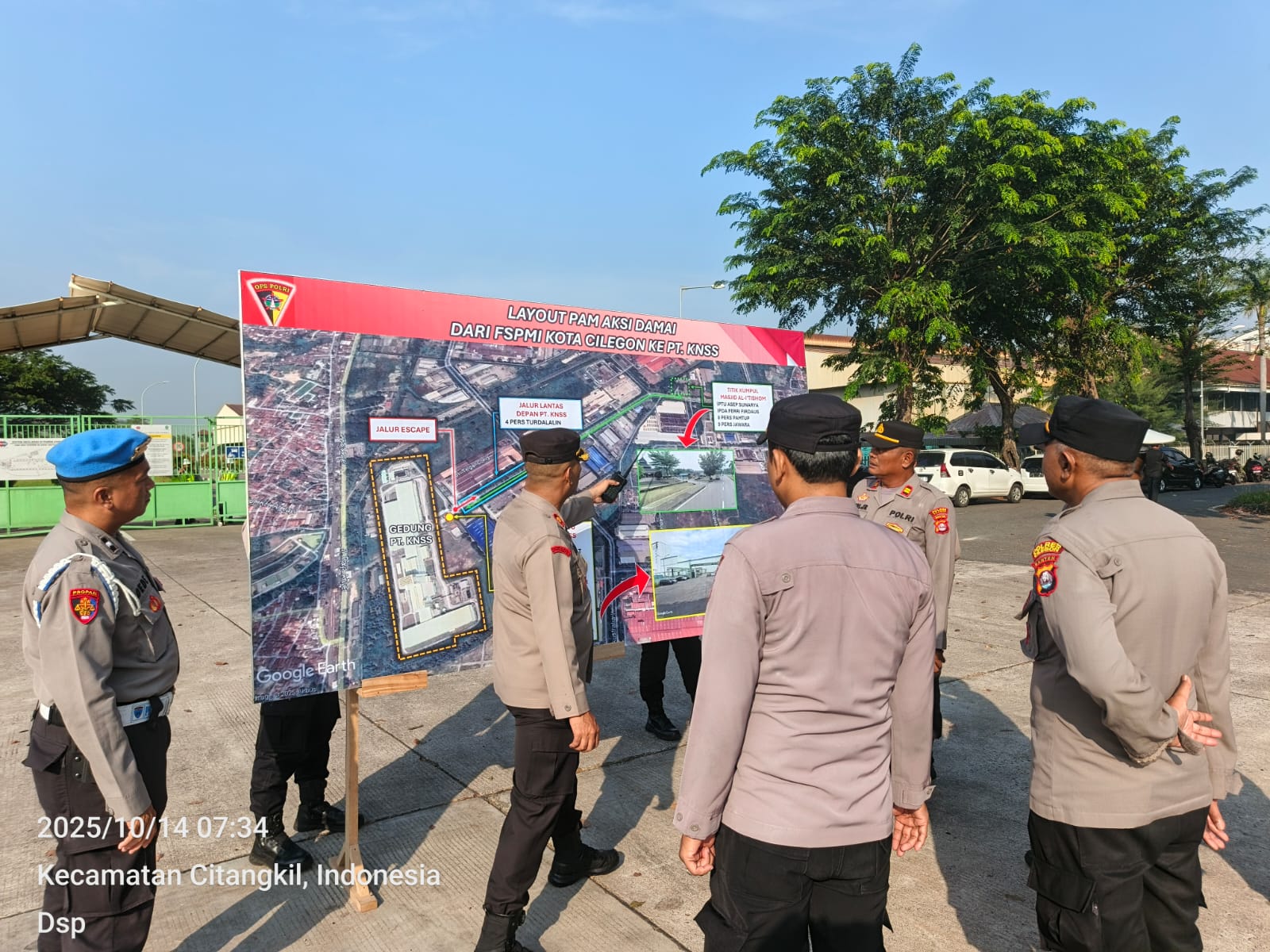 Kapolres Cilegon Polda Banten AKBP Dr. Martua Raja Taripar Laut Silitonga Melalui Kapolsek Ciwandan Polres Cilegon Polda Banten KOMPOL Andi Suherman Mengatakan bahwa Dengan kekuatan personil sebanyak 105 orang, apel pengamanan ini dilaksanakan untuk memastikan keamanan dan ketertiban selama aksi damai berlangsung.