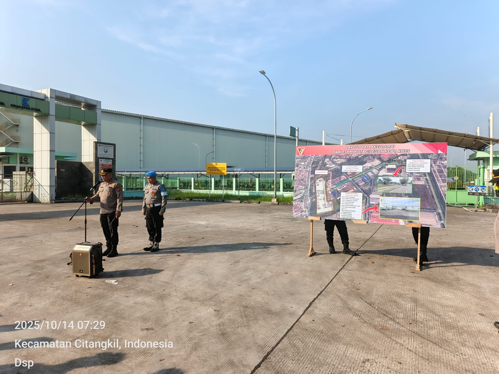 Kapolres Cilegon Polda Banten AKBP Dr. Martua Raja Taripar Laut Silitonga Melalui Kapolsek Ciwandan Polres Cilegon Polda Banten KOMPOL Andi Suherman Mengatakan bahwa Dengan kekuatan personil sebanyak 105 orang, apel pengamanan ini dilaksanakan untuk memastikan keamanan dan ketertiban selama aksi damai berlangsung.