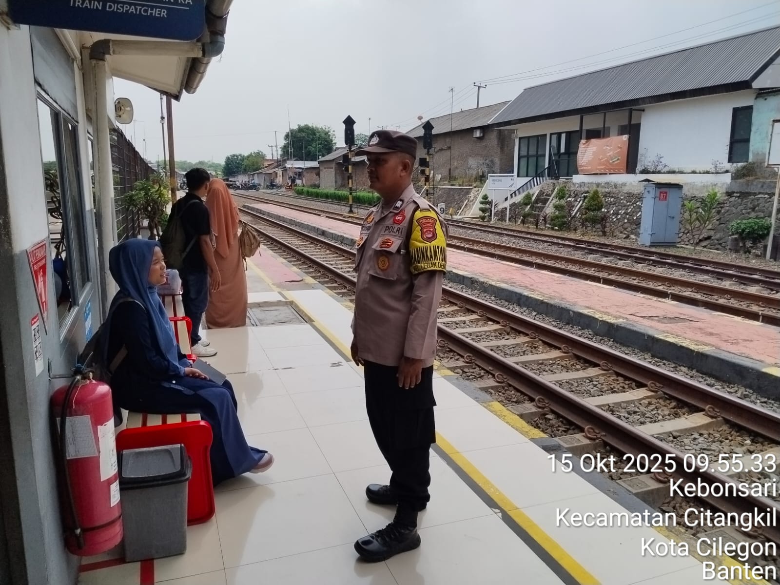 Cilegon - Personil Polsek Ciwandan Polres Cilegon Polda Banten melaksanakan giat patroli Dan dengan sambangi Petugas Stasiun Kereta Api dan penjaga pintu perlintasan kereta api,Rabu (15/10/2025).