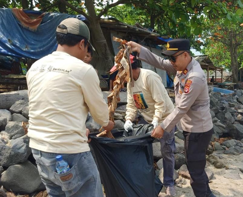 Polsek Anyar menghadiri dan mengikuti Dalam kegiatan Gerakan Sapta Pesona dalam rangka membersihkan pantai dari sampah
