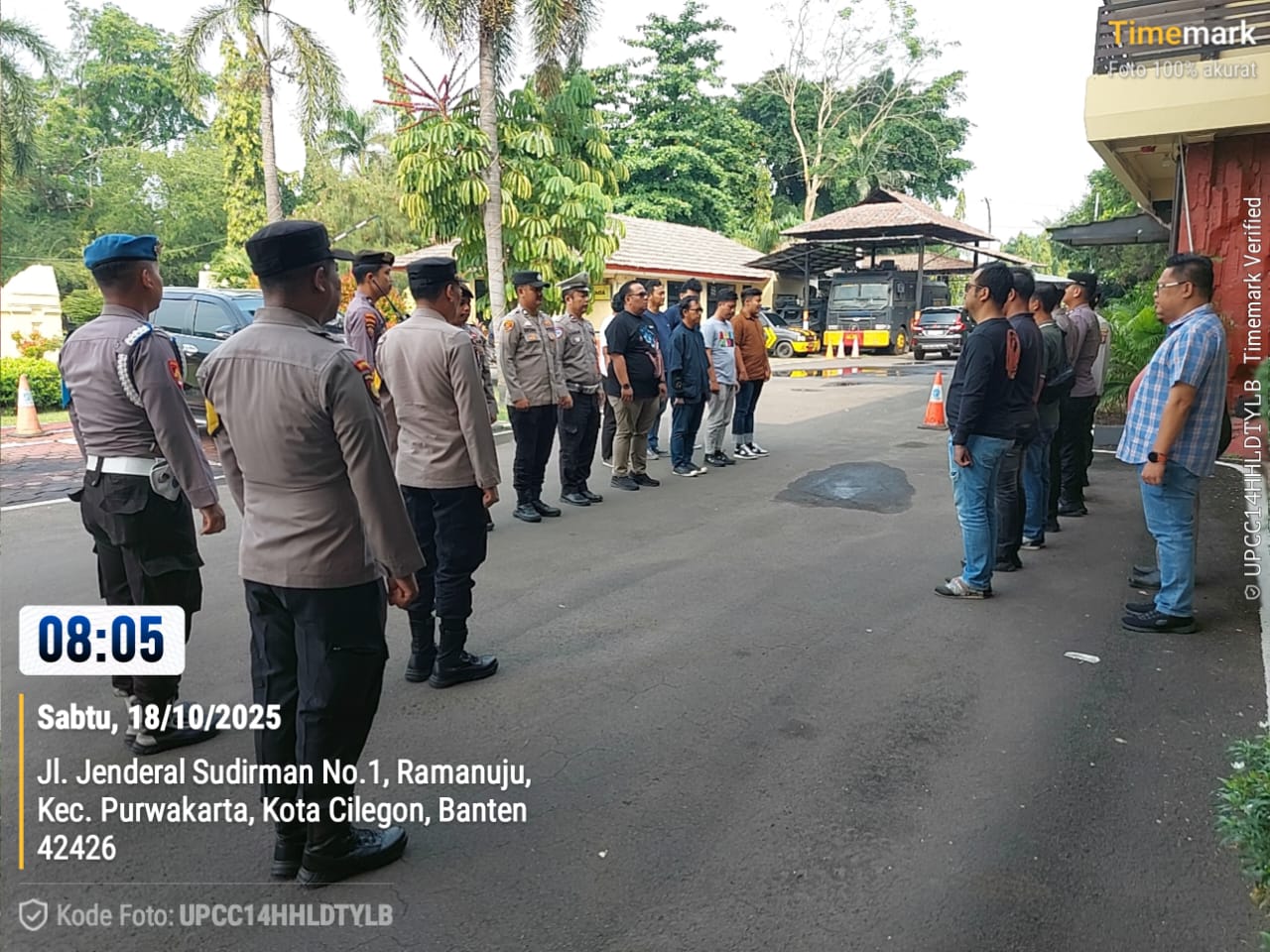 Cilegon, personel Satreskrim Polres Cilegon Polda Banten melaksanakan piket di penjagaan pintu masuk Polres Cilegon Polda Banten untuk memastikan mako Polres Cilegon dalam keadaan aman dan nyaman dalam melayani Masyarakat tanpa adanya gangguan kejahatan. Sabtu (18/10/2025).