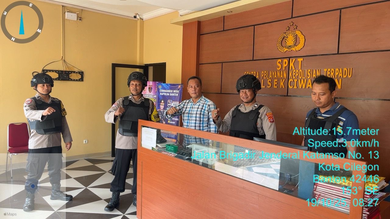 Cilegon - Dalam Kesiap Siagaan dan Memperketat Penjagaan Mako (Markas Komando), Personil Polsek Ciwandan Polres Cilegon Polda Banten melaksanakan Sistem Pengamanan Markas Komando (Sispam Mako), Minggu (19/10/2025).