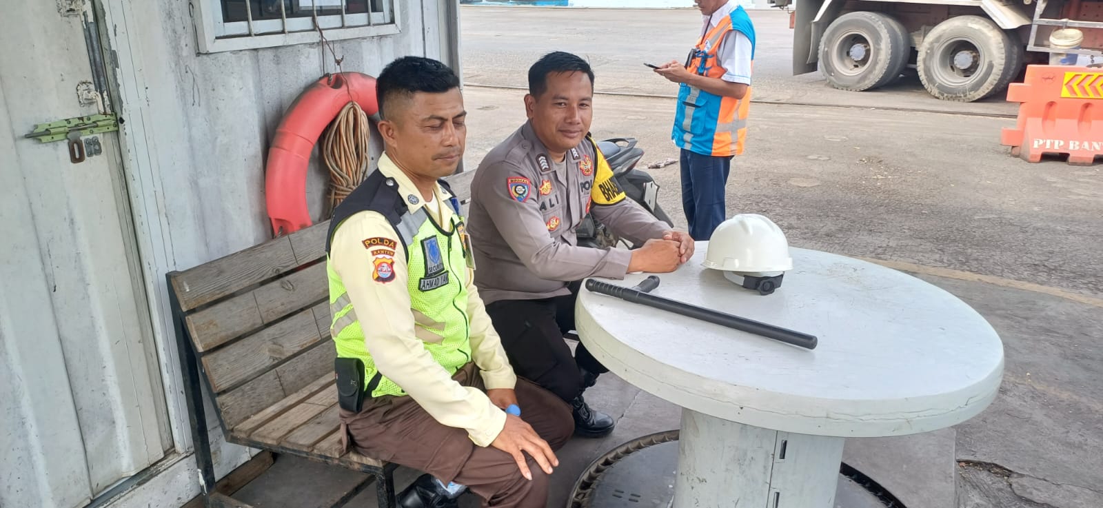 Kapolres Cilegon Polda Banten AKBP Martua Raja Taripar Laut Melalui Kapolsek Kskp Banten Polres Cilegon Polda Banten AKP Fredo Leonard Mengatakan Personil Polsek Kskp Banten Rutin menyambangi anggota Security dan memberikan himbauan agar para anggota Security bisa melaksanakan tugas menjaga keamanan di lingkungan Kawasan Pelabuhan.