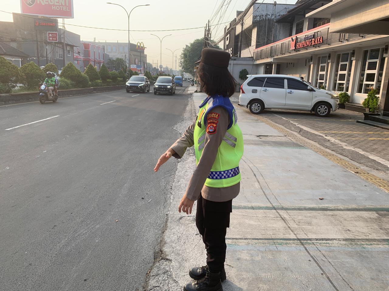 Cilegon - Dalam Mewujudkan Aksi Nyata Pelayanan Kepada Masyarakat,Personil Polres Cilegon Polda Banten Laksanakan Strong Poin Pengaturan Lalu-lintas, Rabu (22/10/2025).
