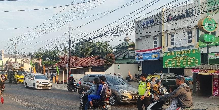Anggota Polsek Anyar Pengaturan Lalu Lintas Agar Jalur Lancar Aman