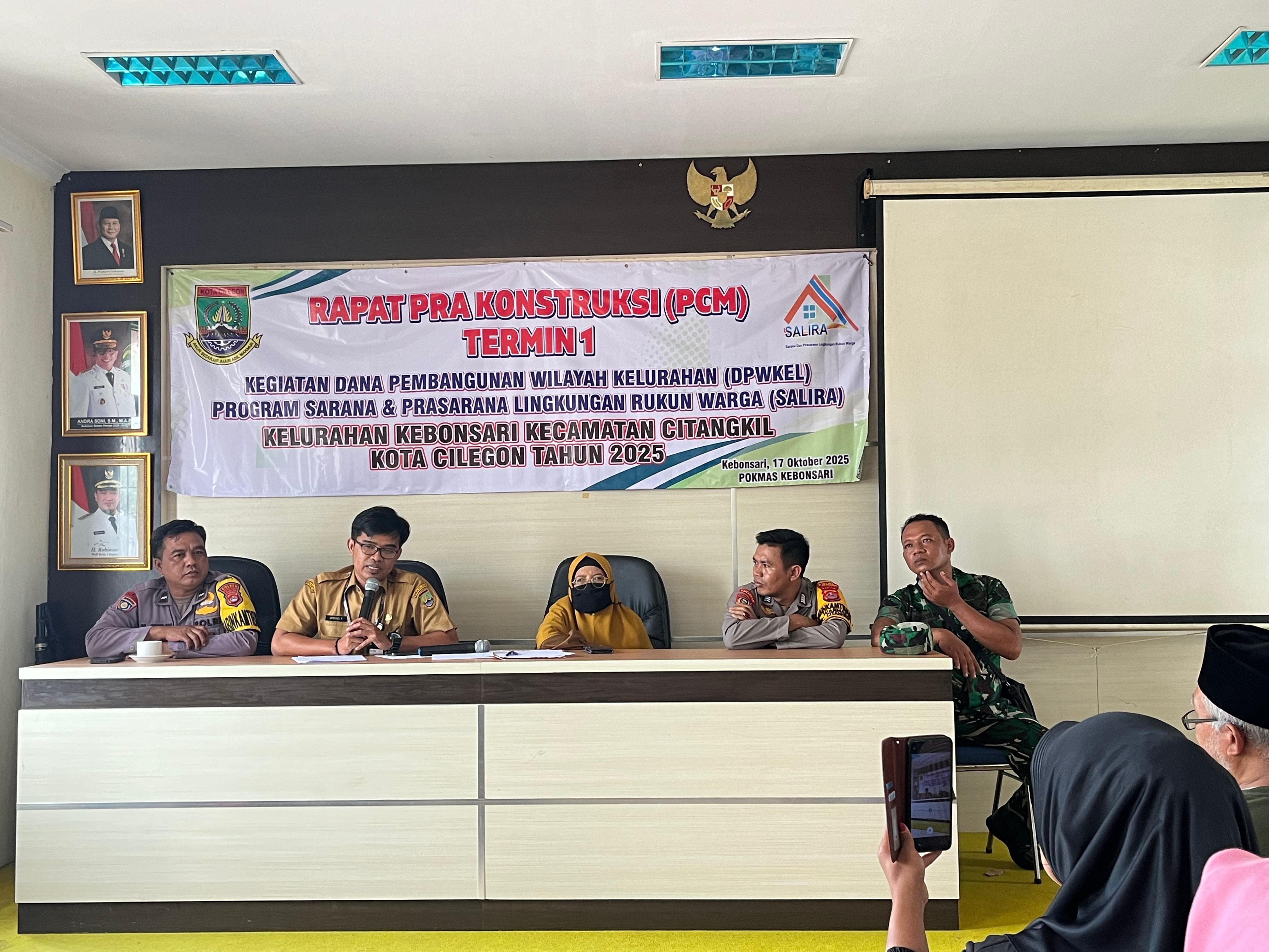 Cilegon - Bhabinkamtibmas Polsek Ciwandan Polres Cilegon Polda Banten Melaksanakan kegiatan Rapat Pra Kontruksi Pelaksanaan pembangunan Desa Kecamatan Citangkil kota Cilegon, Senin (20/10/2025).