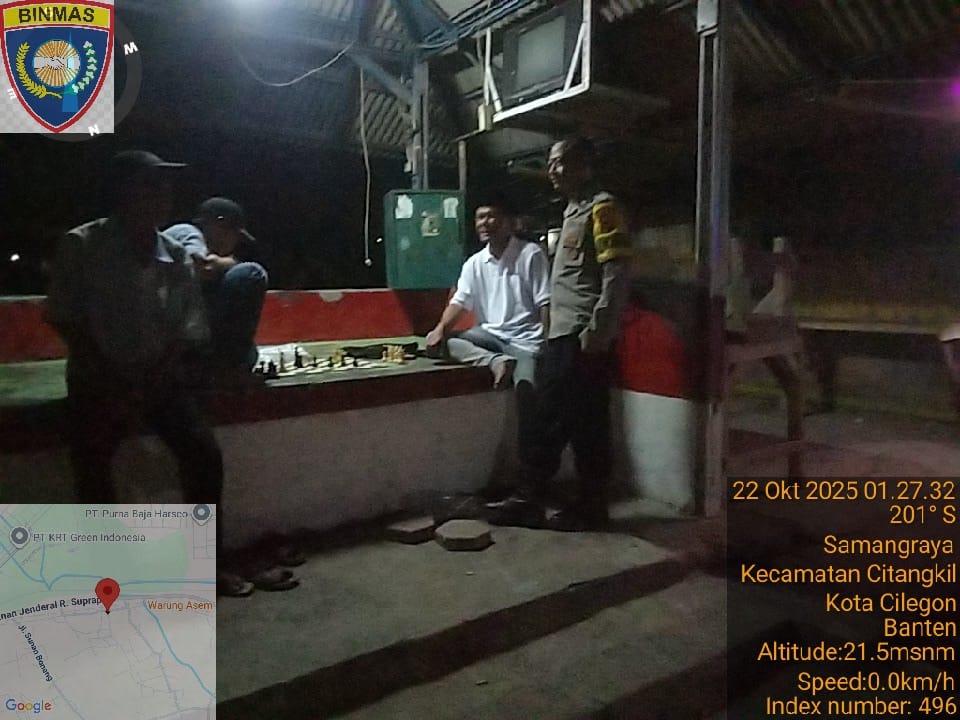 Cilegon - Guna Mencegah Terjadinya Tindak Kejahatan dan Menggiatkan Patroli Pos Ronda Siskamling di Pemukiman warga masyarakat,Personil Polsek Ciwandan Polres Cilegon Polda Banten Mengajak dan memantau pelaksanaan ronda siskamling di lingkungan daerah hukum Polsek Ciwandan, Rabu (22/10/2025).