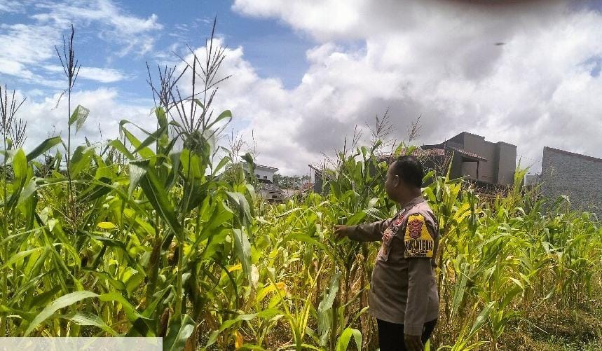 Implementasi Program Asta Cita, personil bhabinkamtibmas polsek Cibeber monitoring di perkebunan Jagung