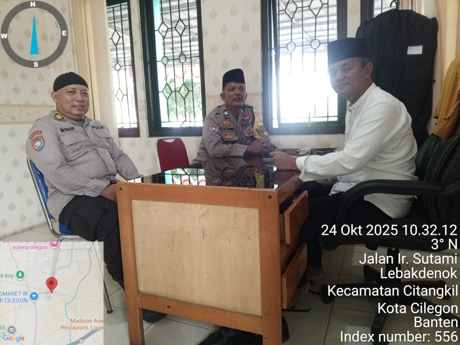 Cilegon -  Kali ini Wakapolsek Ciwandan AKP Uup M. Ma'ruf Dan Bhabinkamtibmas Kelurahan Lebak Denok Polsek Ciwandan Polres Cilegon Polda Banten AIPTU Yudi Setiawan melaksanakan kegiatan sambang Dialogis Dan silaturahmi Bersama Lurah Dan Staff Kelurahan Lebak Denok Kecamatan Citangkil Kota Cilegon, Jum’at (24/09/2025).