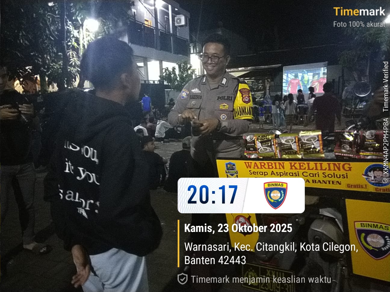 Cilegon - Bhabinkamtibmas Polsek Ciwandan Polres Cilegon Polda Banten, BRIPKA Marisco melaksanakan kegiatan WARBIN (warung Blnhabinkamtibmas) di Lingkungan Binaan,Jum’at (24/10/2025).