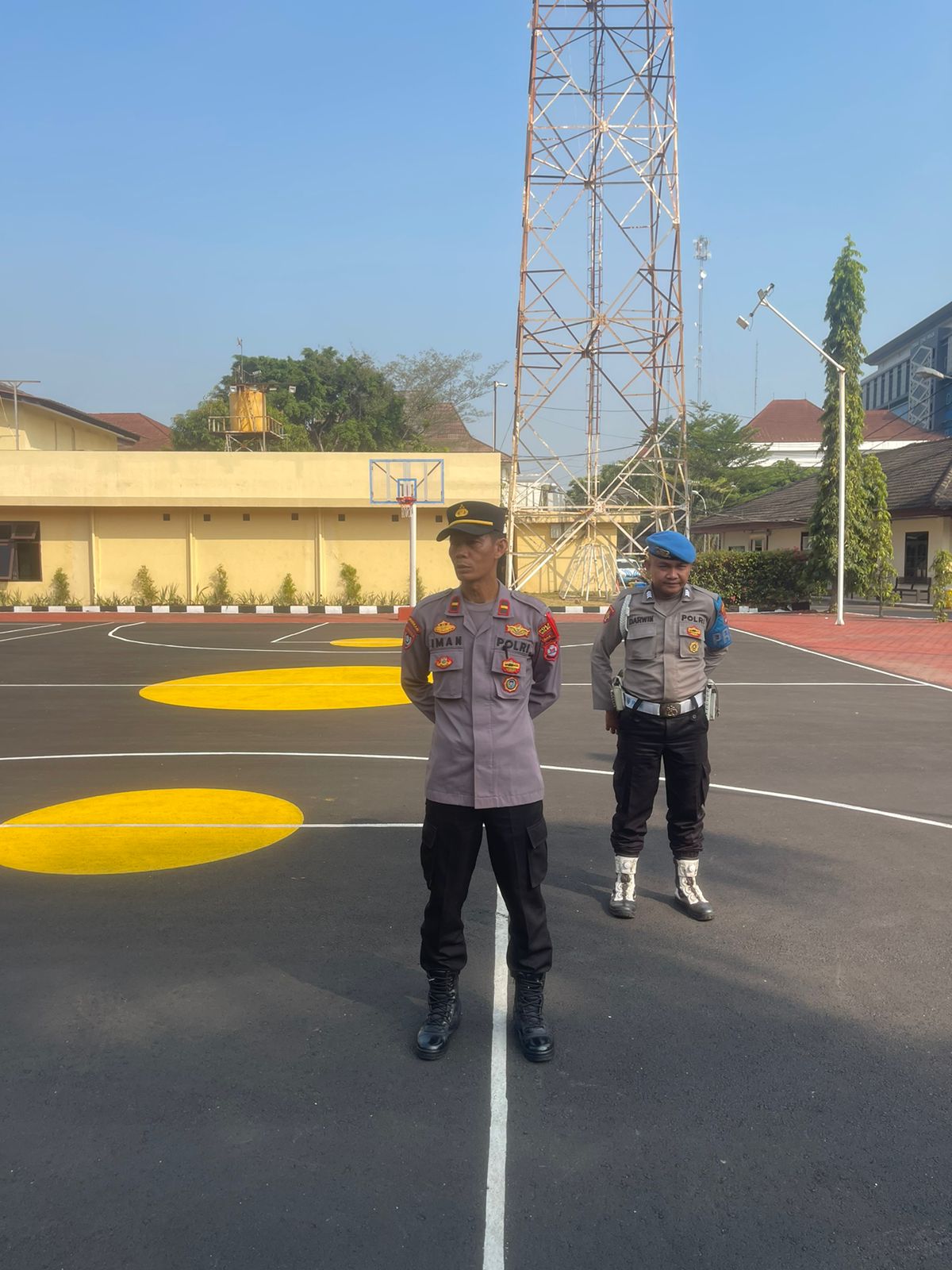 Cilegon,Polres Cilegon Polda Banten Pada Minggu/26/10/2025 Pukul 08.00 Wib,Brigadir Hadi Sudrajat  melaksanakan kegiatan apel peleton kerangka dua di lapangan apel Polres Cilegon.