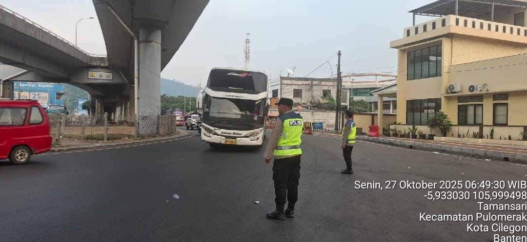 Polsek KSKP Merak Pastikan Kelancaran Arus Kendaraan di Pelabuhan Merak