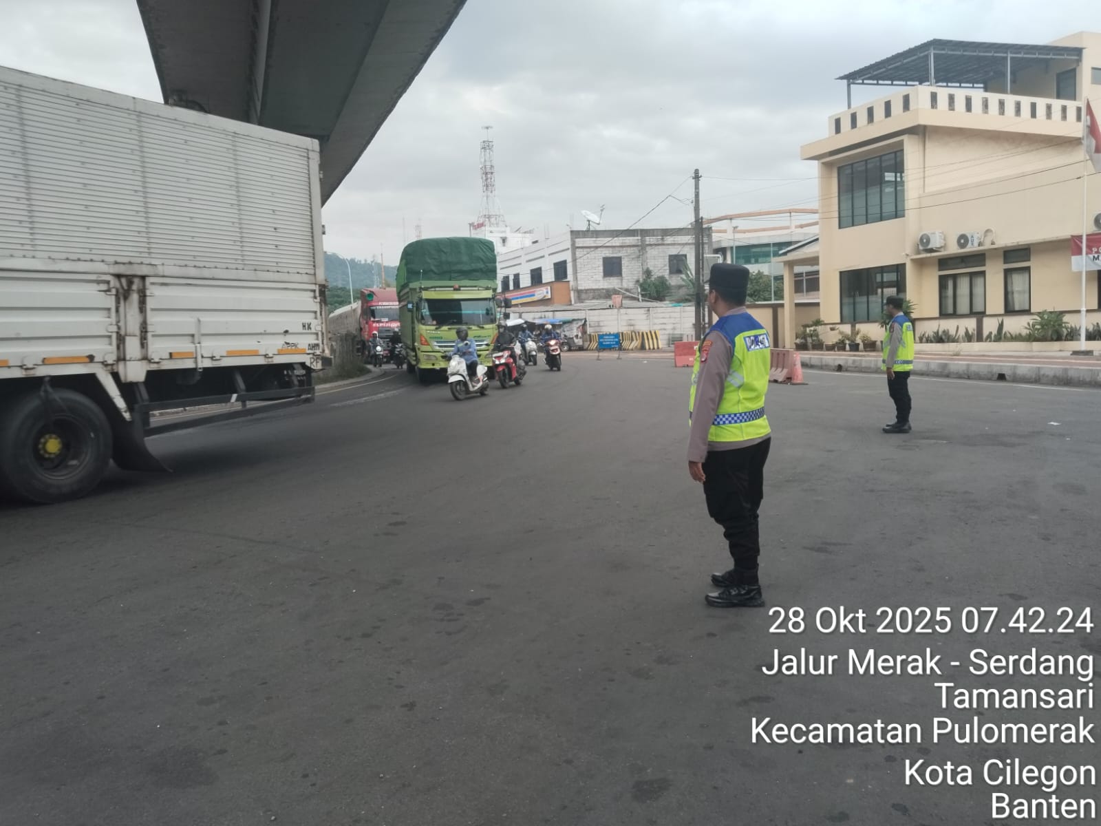 Cilegon - Dalam rangka peningkatan pelayanan prima kepada masyarakat, Kskp Merak Polres Cilegon Polda Banten melaksanakan pengaturan antrian R4 yang akan masuk ke Kapal Ferry di Pelabuhan Merak, Selasa (28/10/2025).