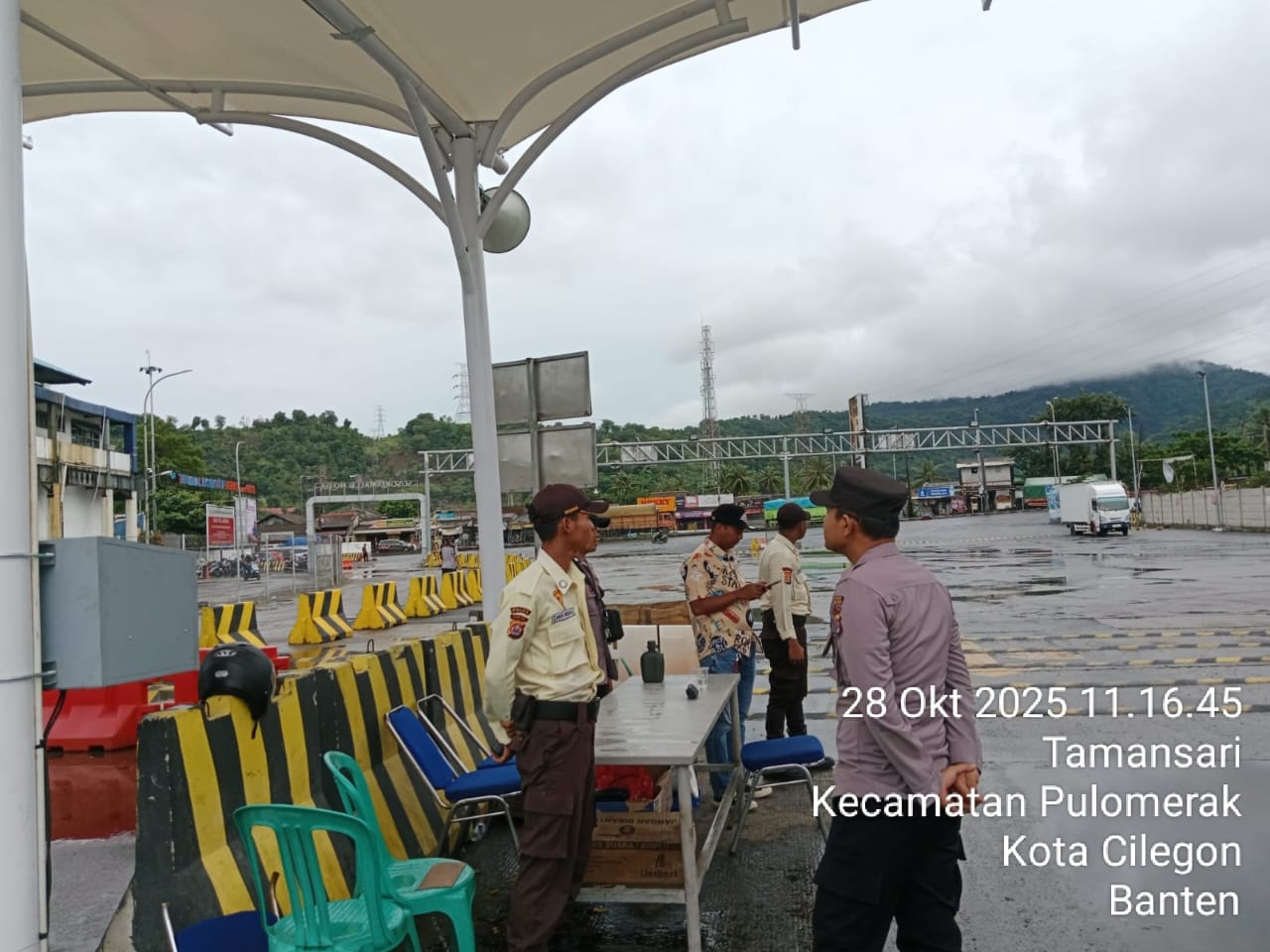 Cilegon - Personel Polsek Kskp Merak Polres Cilegon Polda Banten melaksanakan sambang dan patroli kawasan pelabuhan merak dalam rangka menjaga Harkamtibmas di Kawasan Pelabuhan Merak, Selasa (28/10/2025).