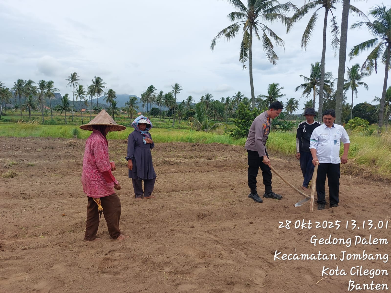 Cilegon - Melaksanakan program pemerintah, penanaman jagung dalam program ketahanan pangan, personil Polsek Kp Merak Polres Cilegon Polda Banten melaksanakan kegiatan peninjauan serta monitoring lokasi yang nantinya akan ditanami bibit jagung unggul di Desa Mangkunegara Kecamatan Bojonegara, Kabupaten Serang, Selasa (28/10/2025).