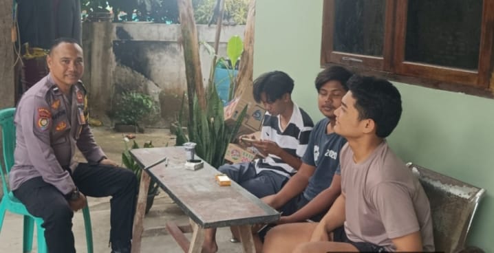 -POLRES CILEGON - Polda Banten. Bhabinkamtibmas Kelurahan Pabean, Aipda Anton Sudrajat, aktif menyapa para pemuda di lingkungan Pecinan, Kelurahan Pabean, Kecamatan Purwakarta, Kota Cilegon, dalam upaya menjaga keamanan dan ketertiban masyarakat (Kamtibmas).