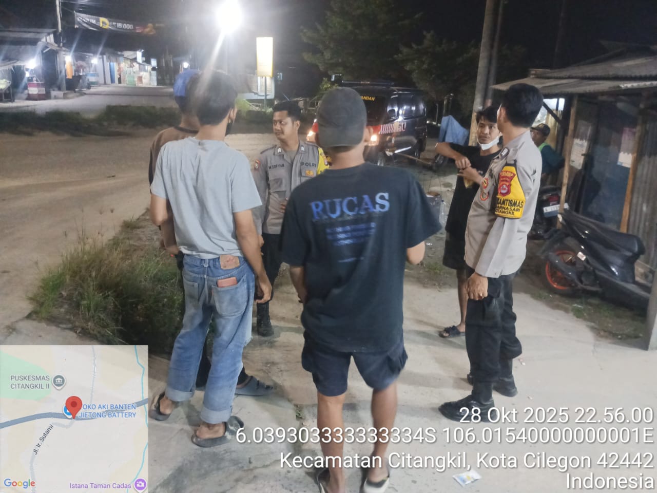 Personil Polsek Ciwandan Serap Informasi Kamtibmas Melalui Patroli Malam Dialogis