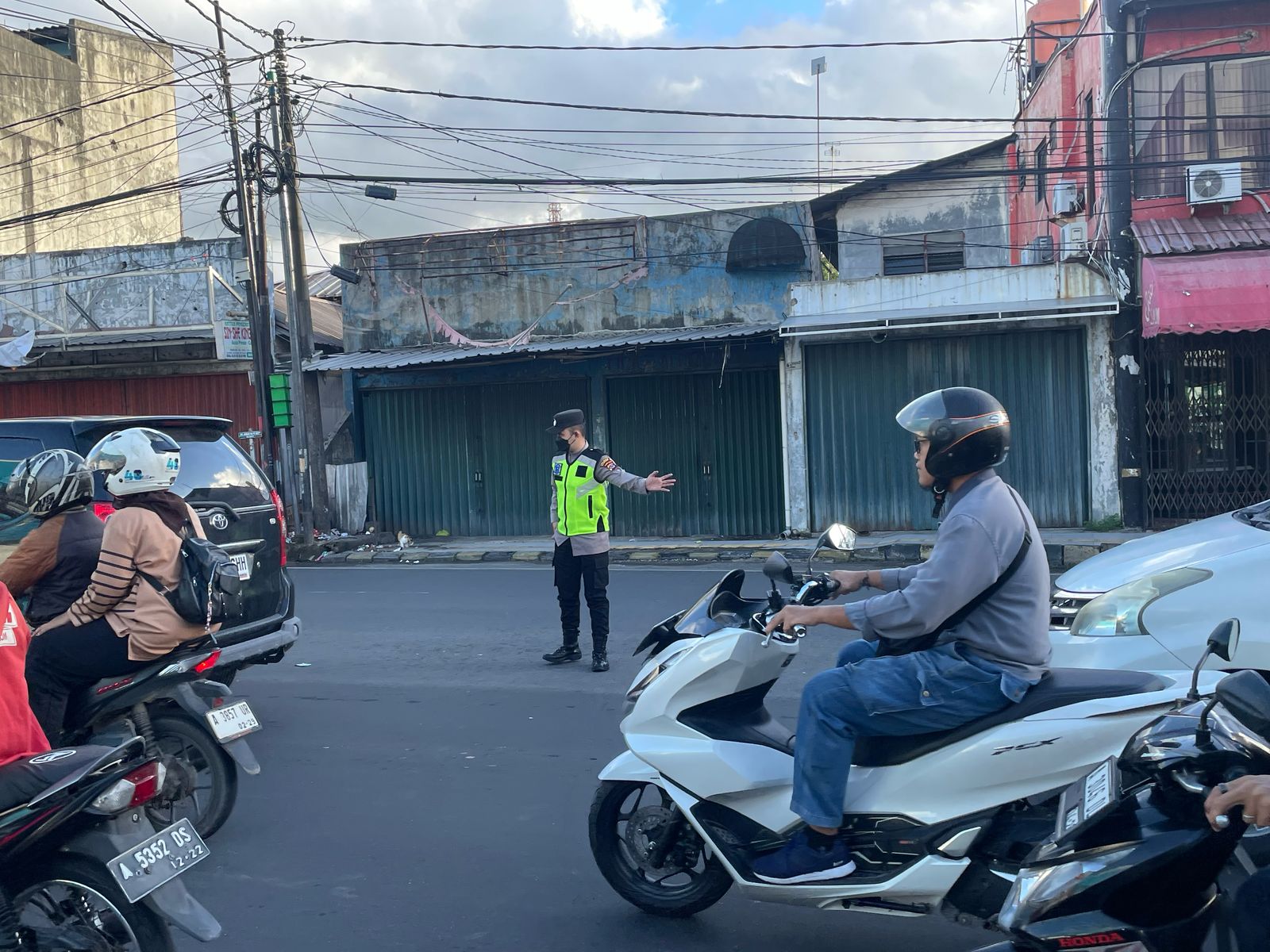 Cilegon,Polres Cilegon Polda Banten Pada Kamis 30/10/2025 Pukul 06.30 Wib, Personil Siwas Polres Cilegon, Brigpol Hadi sudrajat melaksanakan kegiatan pengaturan arus lalu lintas di Jalur Protokol jalan utama Kota Cilegon tepat nya di jalur protokol Kota Cilegon.