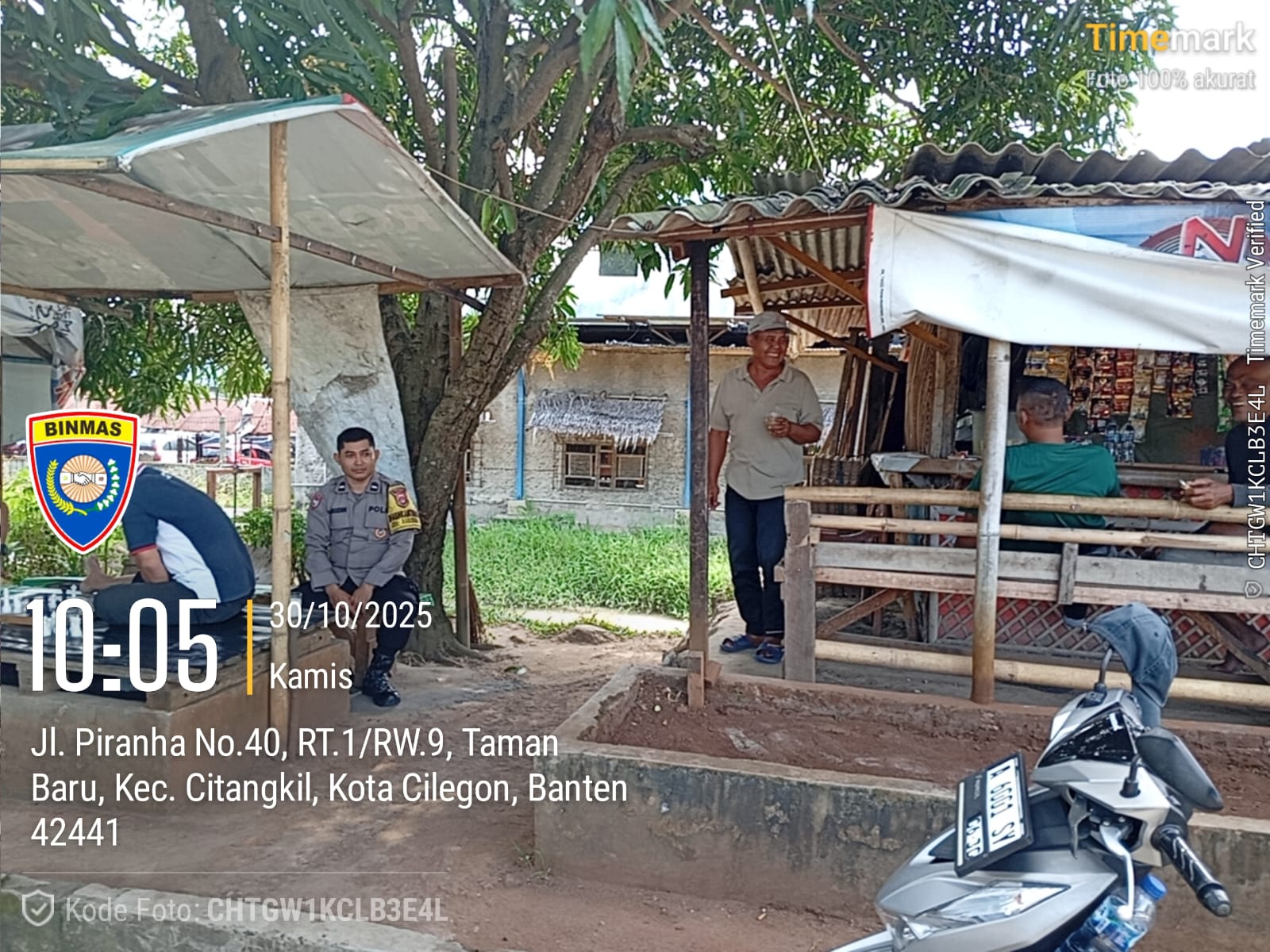 Cilegon - Personil Bhabinkamtibmas Polsek Ciwandan Polres Cilegon Polda Banten Menyampaikan Pesan Kamtibmas dan mengajak masyarakat terus aktif dalam kepedulian terhadap Pemeliharaan keamanan lingkungan di daerah Binaanya, Kamis (30/10/2025).