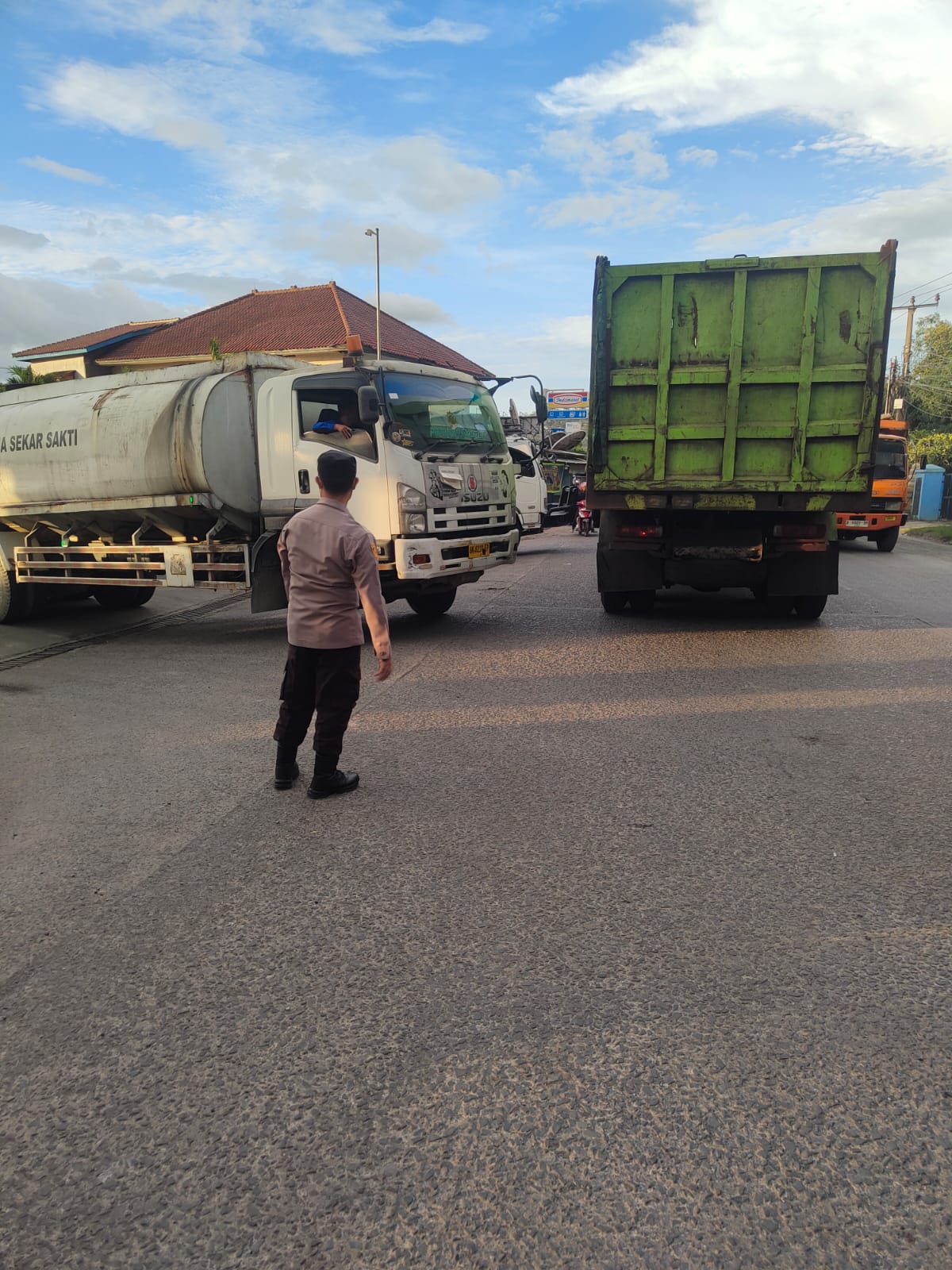Bripka Zaenal Polsek Bojonegara Polres Cilegon Laksanakan Giat Pengaturan Lalin Di Pom Bensin Bojonegara