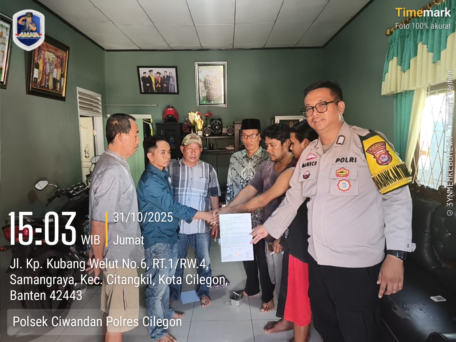 Cilegon - Sebagai pelayan masyarakat guna menciptakan kehidupan harmonis, damai dan saling pengertian dalam bermasyarakat Bhabinkamtibmas Kelurahan Samangraya Polsek Ciwandan Polres Cilegon Polda Banten BRIPKA Marisco melaksanakan Mediasi dan Penyelesaian Problem Solving Warga Binaan, Jum’at (31/10/2025).
