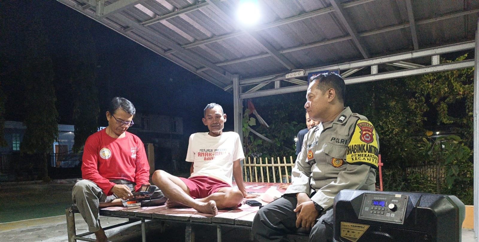 Cilegon - Personel Bhabinkamtibmas Polsek Anyar Polres Cilegon Polda Banten Aiptu Irvan melaksanakan sambang Ronda Siskamling Dalam rangka menjaga Harkamtibmas dan Sebagai bentuk mendukung Program Quick Wins Presisi Polri, Sabtu (01/11).