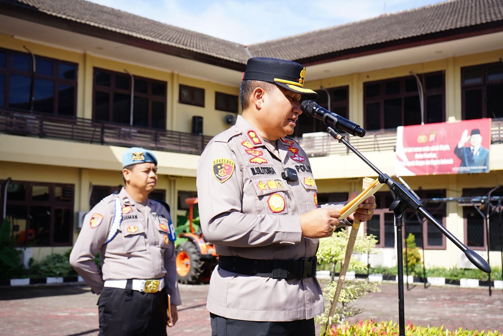 Apel yang dipimpin langsung oleh Kapolres Cilegon, AKBP Dr. Martua Raja Taripar Laut Silitonga, S.H., S.I.K., M.Si., ini bertujuan memperkuat semangat kebersamaan dan menjaga kondusifitas di wilayah hukum Polres Cilegon. Turut hadir PJU Polres Cilegon, para perwira, personel gabungan satuan fungsi, perwakilan serikat buruh, serta komunitas ojol Kamtibmas Kota Cilegon.