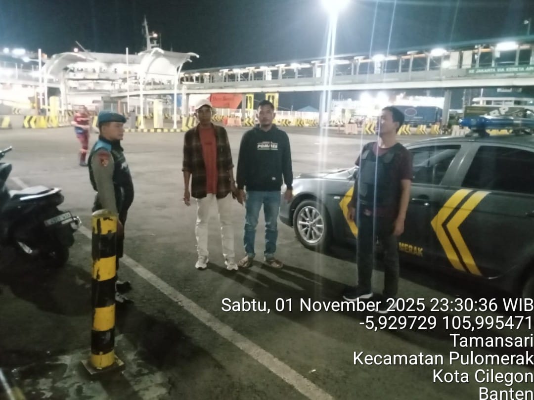 Cilegon - Personil Polsek Kskp Merak Polres Cilegon melaksanakan patroli di kawasan pelabuhan merak memberikan rasa aman dan damai, Minggu (02/11/2025)