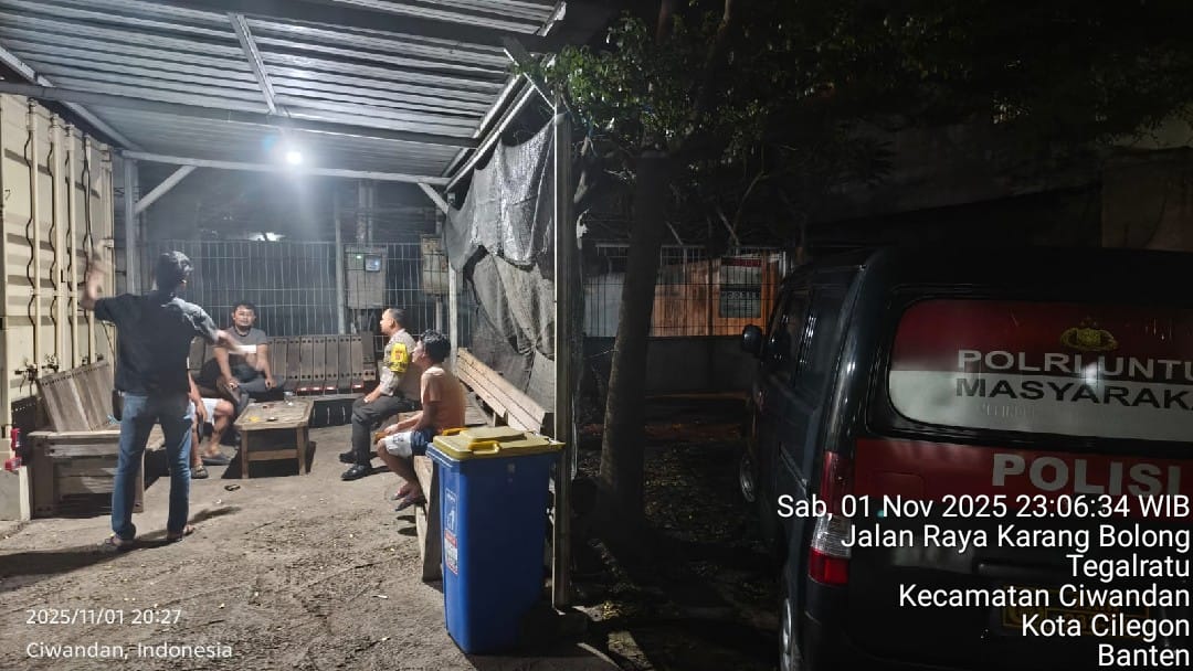 Cilegon - Polsek Ciwandan Polres Cilegon Polda Banten kembali menunjukkan komitmennya dalam menciptakan keamanan dan ketertiban masyarakat (kamtibmas) yang kondusif melalui Kegiatan Patroli Malam, Kegiatan ini dilakukan secara rutin dengan berkeliling di daerah hukum Polsek Ciwandan, Minggu (02/11/2025).