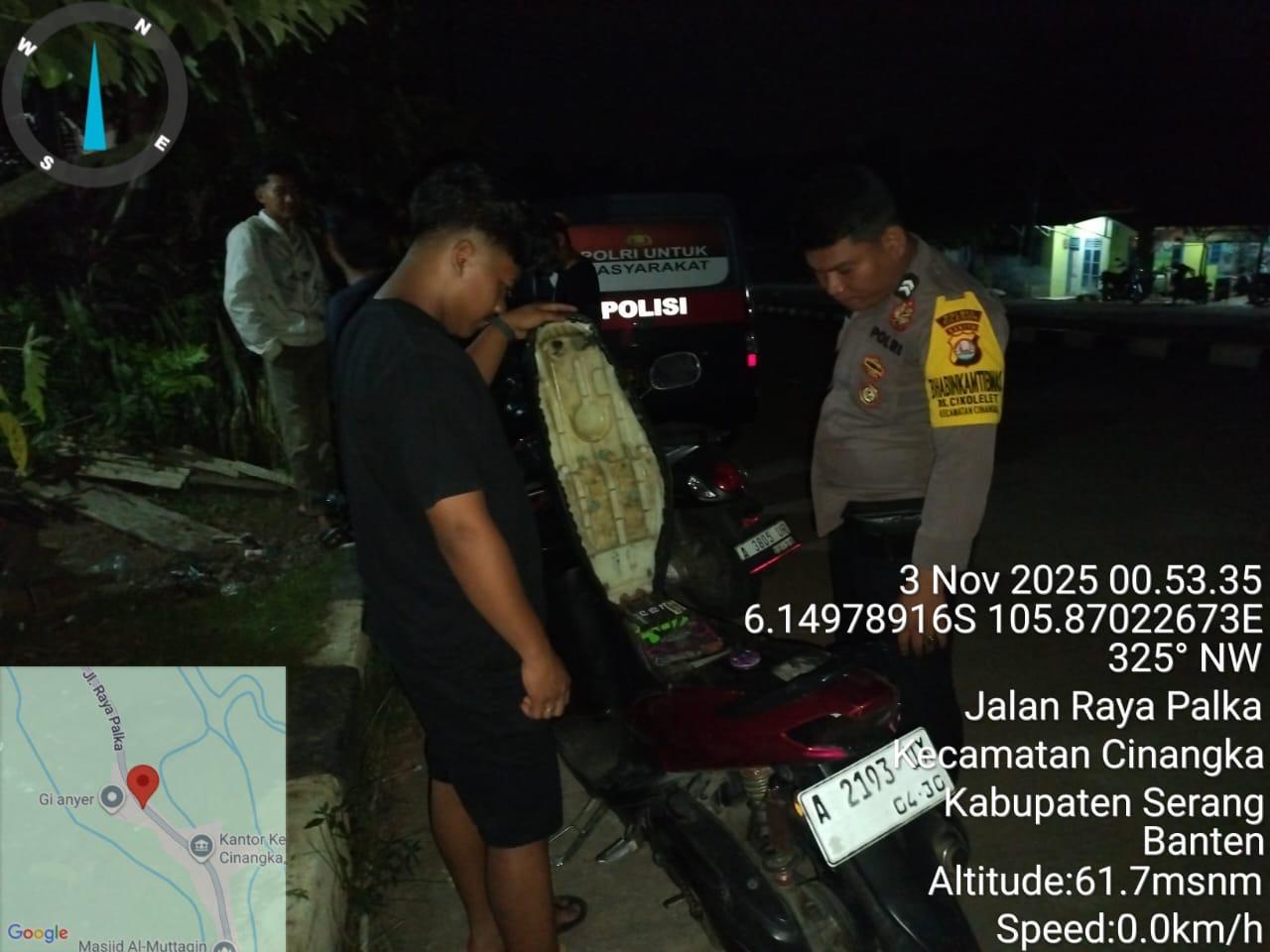 *Cilegon* – Dalam Rangka Pencegahan Kejahatan Jalanan dan Memelihara situasi keamanan dan menjaga serta memberikan rasa aman dan nyaman di masyarakat,Salah satu upaya untuk mewujudkan hal tersebut sebagaimana yang dilakukan oleh Personil Polsek Cinangka Polres Cilegon Polda Banten melaksanakan giat patroli blue light malam hari hingga menjelang pagi, Senin (03/11/2025).