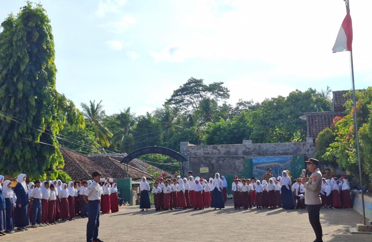 Kapolsek Anyar Pimpin Upacara di SDN dan SMPN satu Atap Dan Memberikan Himbauan