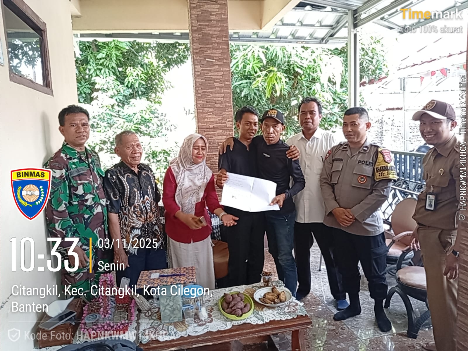 Cilegon – Personil Bhabinkamtibmas Polsek Ciwandan Polres Cilegon Polda Banten Bersama dengan Babinsa Koramil Ciwandan Melaksanakan Sambang Bersama dalam rangka Memberikan Rasa Aman dan Himbauan Kamtibmas Kepada Warga Masyarakat, Senin (03/11/2025).