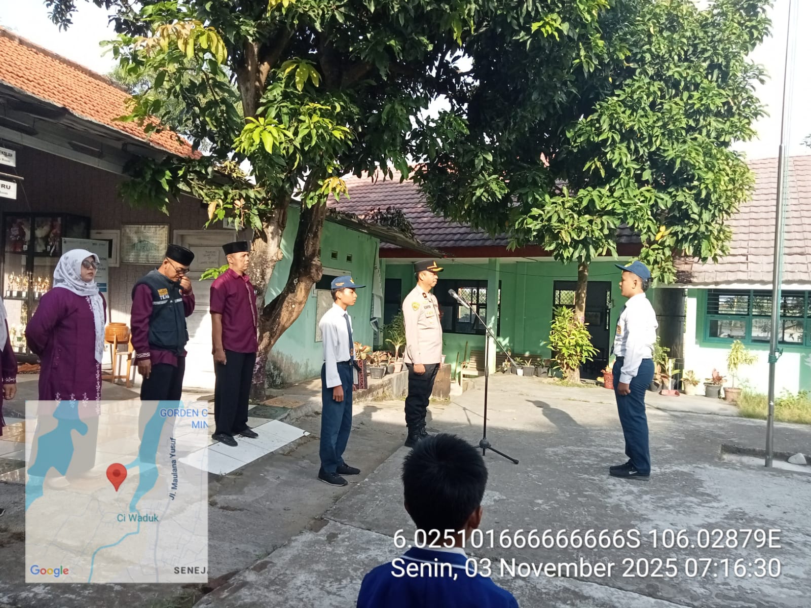 Cilegon – Bhabinkamtibmas Polsek Ciwandan Dampingi Kabag SDM Polres Cilegon Polda Banten KOMPOL Entang Cahyadi Menyambangi SMP Al-A’raaf Dikelurahan Tamanbaru Kecamatan Citangkil, Menyampaikan Pesan-pesan Kamtibmas Dan Memberikan Imbauan, Senin (03/11/2025).