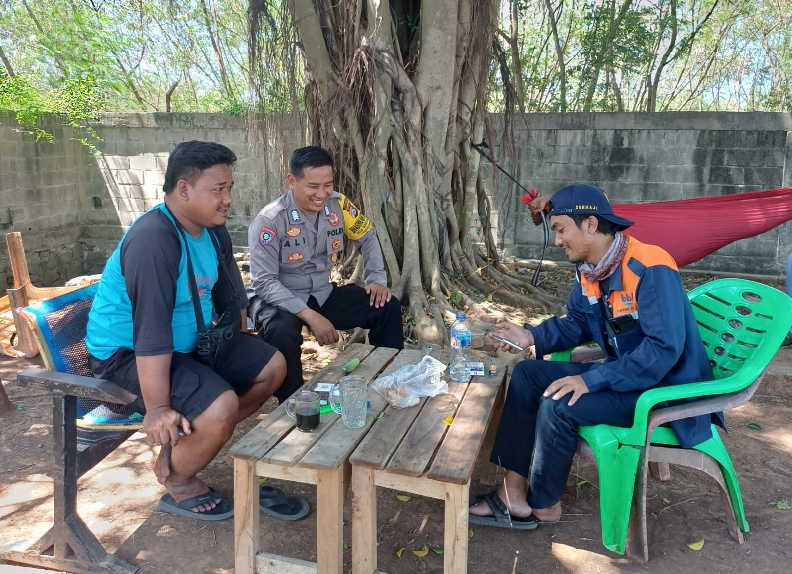 Jalin Silaturahmi, Bhabinkamtibmas Pelabuhan Polsek KSKP Banten berbincang dengan Buruh Pelabuhan
