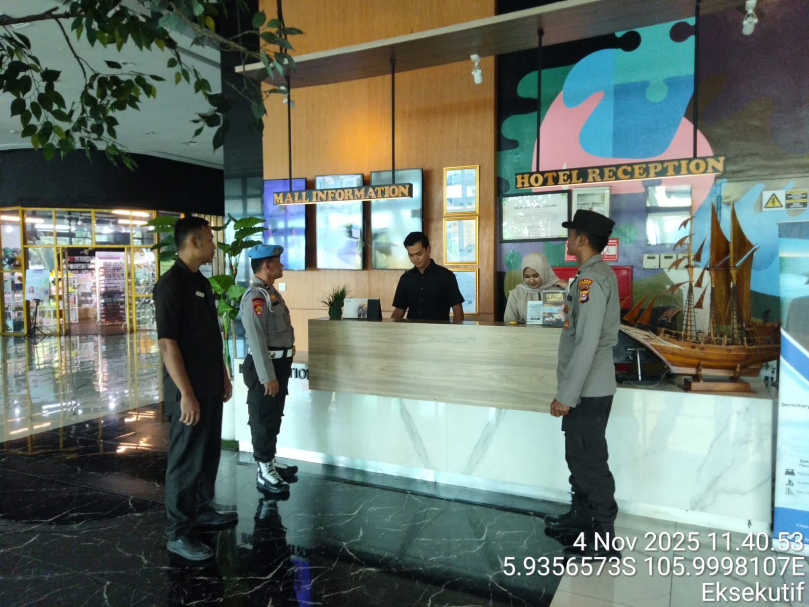 Cilegon - Personel Polsek Kskp Merak Polres Cilegon Polda Banten melaksanakan sambang dan patroli kawasan pelabuhan merak dalam rangka menjaga Harkamtibmas di Kawasan Pelabuhan Merak, Selasa (04/11/2025).