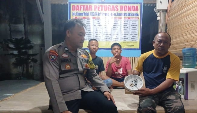 Kunjungan ini bertujuan untuk mempererat silaturahmi antara pihak kepolisian dengan masyarakat, serta memberikan dukungan kepada warga yang aktif menjaga keamanan lingkungan. Dalam kesempatan tersebut, Aiptu daryo menyampaikan pesan-pesan kamtibmas kepada warga dan petugas ronda malam.