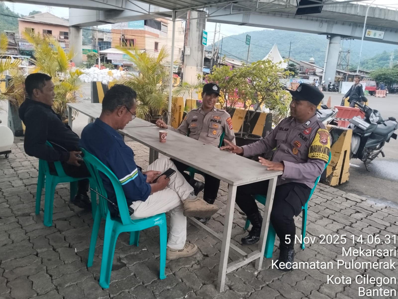 Cilegon - Personel Polsek Kskp Merak Polres Cilegon Polda Banten melaksanakan sambang dan patroli kawasan pelabuhan merak dalam rangka menjaga Harkamtibmas di Kawasan Pelabuhan Merak, Rabu (05/11/2025).