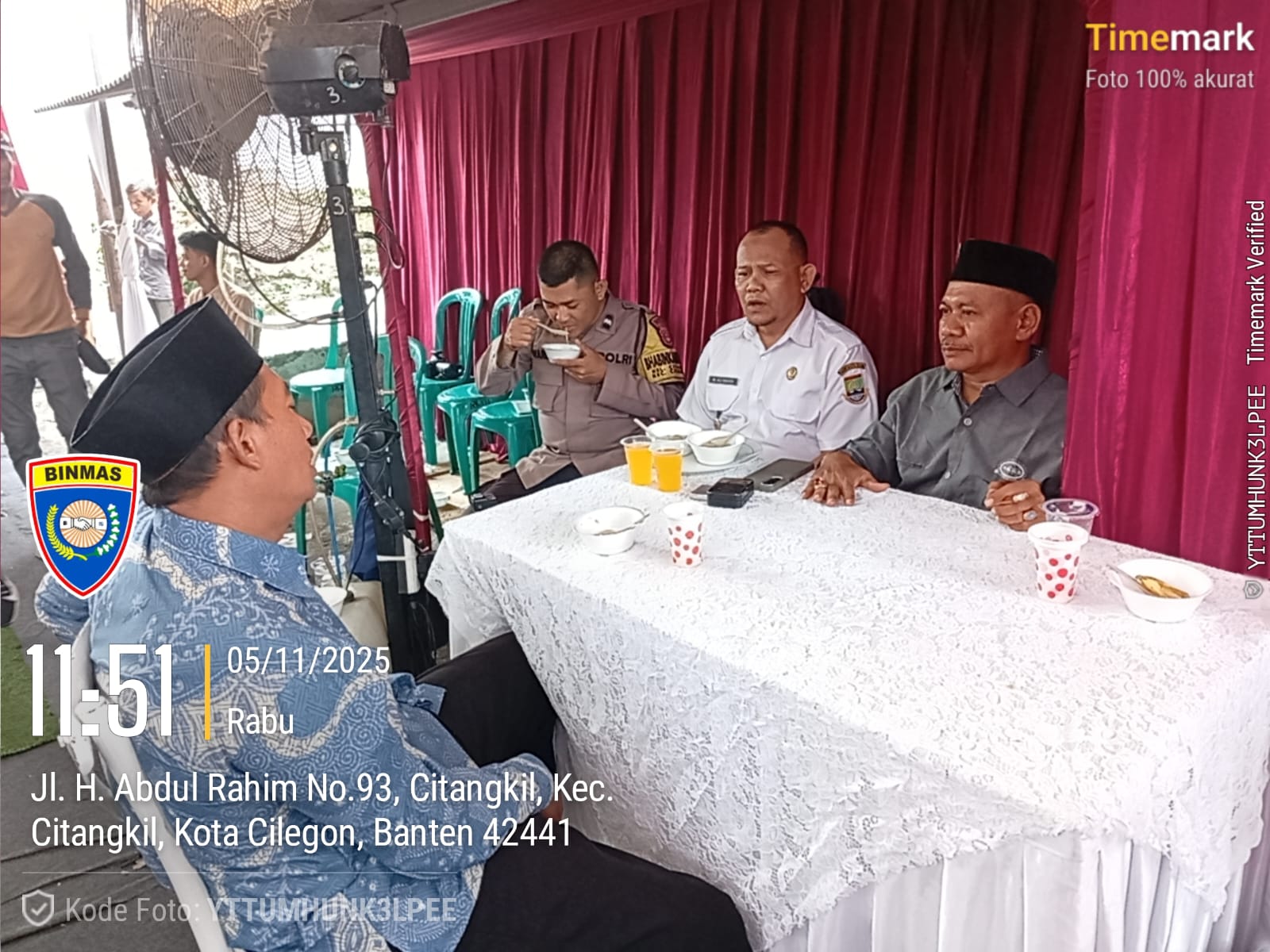 Cilegon - Bhabinkamtibmas Polsek Ciwandan Polres Cilegon Polda Banten melaksanakan Kegiatan Kondangan/Undangan ini bertujuan untuk memastikan acara berlangsung dengan aman dan tertib, serta memberikan rasa aman kepada warga yang menghadiri resepsi pernikahan tersebut, Rabu (05/11/2025).
