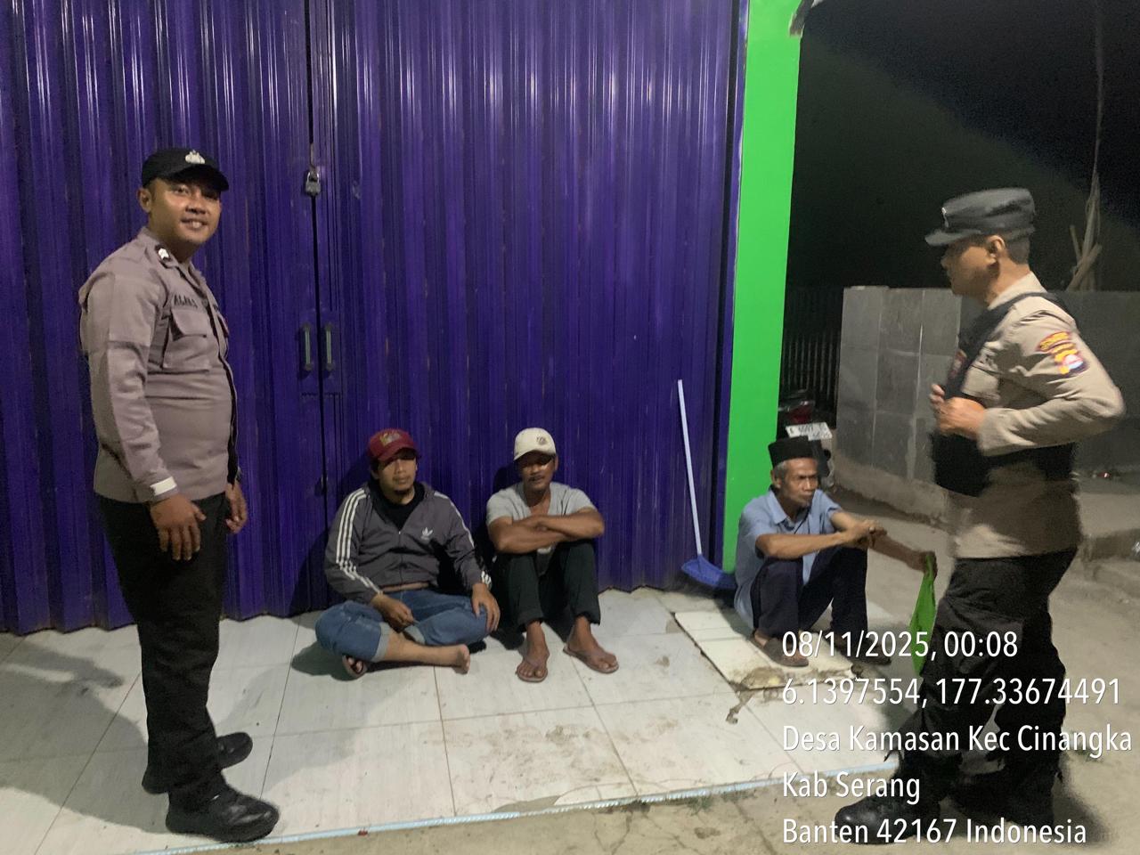 *Cilegon* – Dalam Rangka Pencegahan Kejahatan Jalanan dan Memelihara situasi keamanan dan menjaga serta memberikan rasa aman dan nyaman di masyarakat,Salah satu upaya untuk mewujudkan hal tersebut sebagaimana yang dilakukan oleh Personil Polsek Cinangka Polres Cilegon Polda Banten melaksanakan giat patroli blue light malam hari hingga menjelang pagi, Sabtu (08/11/2025).